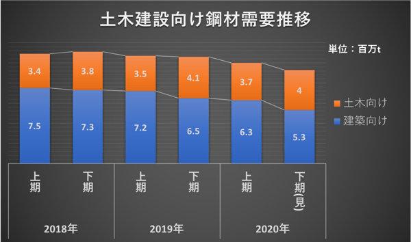 一方で土木建築向けもCOVID-19の影響での工事停滞は限定的。下期にかけて土木向けは増加しました。